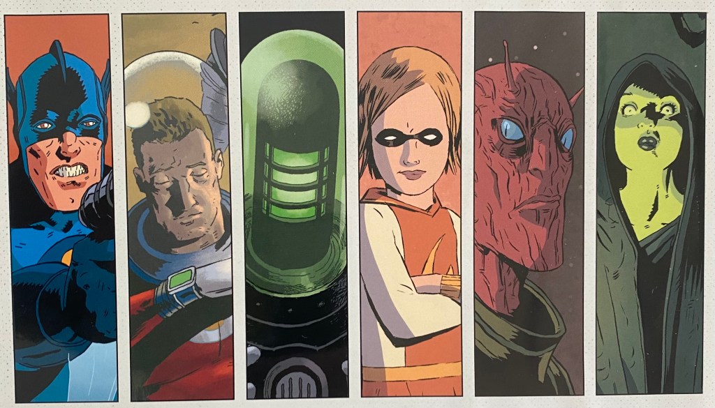 There’s obvious homages to characters we’ve seen before. Abraham Slam is the leader of group. A fighter who could closely be compared to Captain America, minus the serum. Barbalien, aka Mark Markz, is a Martian Manhunter type to a “T”. NASA astronaut, Randall Weird is a take on the character of Adam Strange, a science fiction adventurer. Along Weird’s side is Talky-Walky, his robot companion. Insert ANY human-quality robot found in fictional works. Madam Dragonfly is a witch that could be compared to most others but I see a lot of Raven from Teen Titans on the page. “Golden Gail” is the female version of Shazam/Captain Marvel. Gail is an older woman trapped in the body of a nine year old. And last but certainly not least is Black Hammer. A mix of Shazam and Thor.